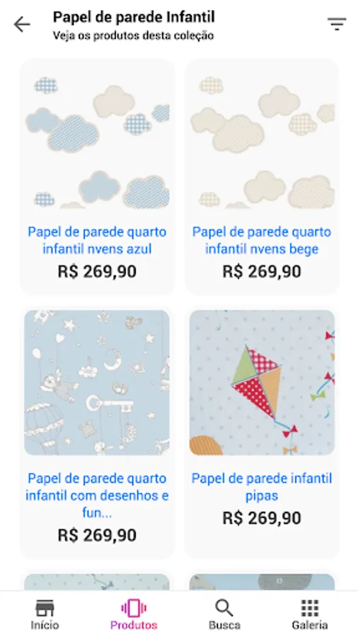 Access our complete catalog of wallpapers, curtains and blinds albums sold in our physical and virtual store.