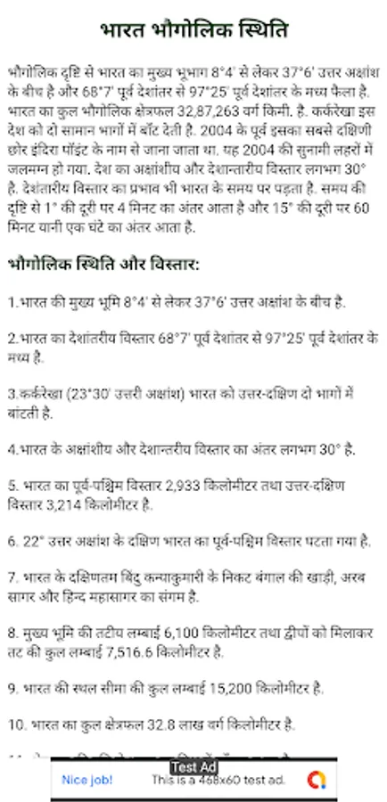 भारत की भौगोलिक स्थिति, भारत की स्थिति एवं विस्तार, भारत का अक्षांश और देशांतर विस्तार, भारत के भौतिक प्रदेश, भारत की स्थलीय एवं समुद्री सीमा