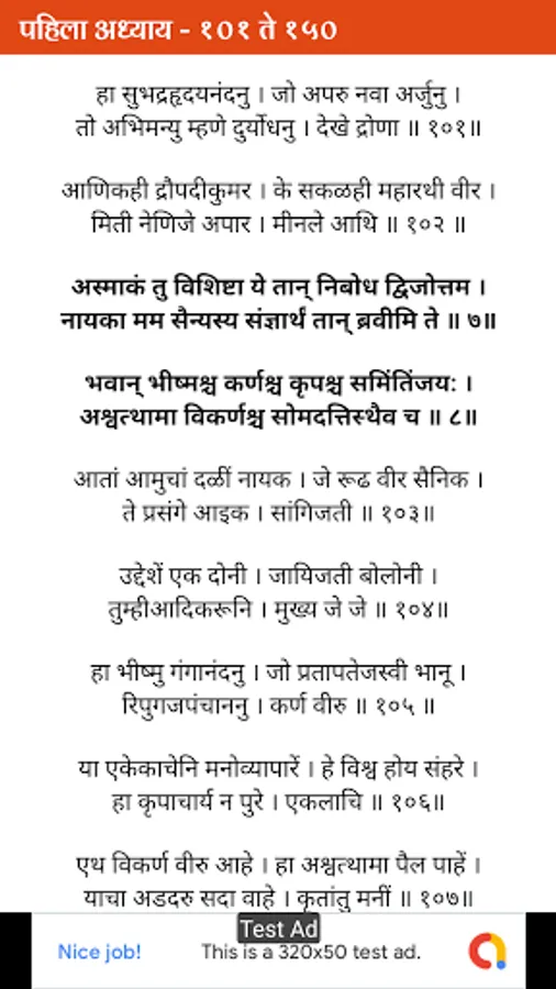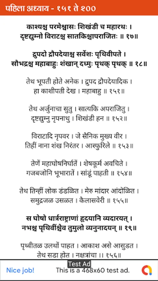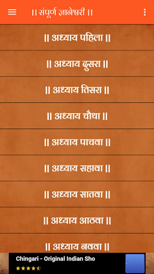 The composition on the Gita by the greatest saint Dnyaneshwar, who is considered to be the pillar of the Warkari Sampraday. Dnyaneshwar recited Dnyaneshwari leaning on a pillar in the village temple at Nevase on the banks of Godavari. The entire Dnyaneshwari is given in Marathi in this application. Our small effort to spread the saga of Dnyaneshwari to all.