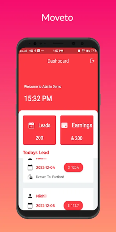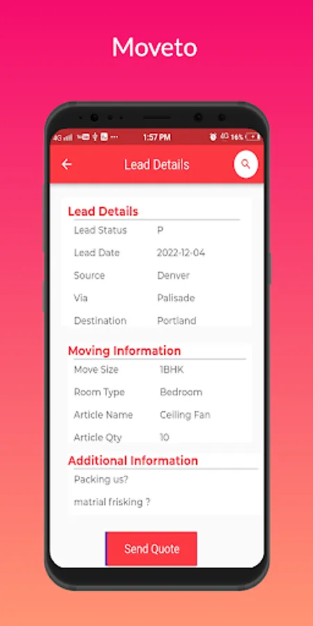 Moveto admin application is a quotation list, quotation details, admin login send quotation price.