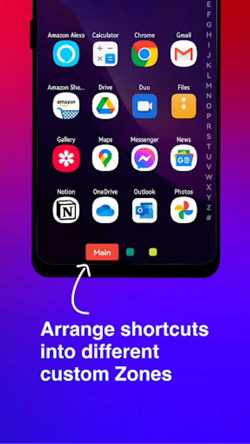 ★ Arrange shortcuts into easy to reach Zones (Categories).