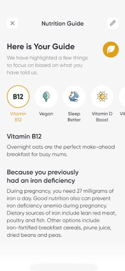 If you choose to sync with the Apple Health App, Biamother will enhance your recommendations based on your fitness and nutrition data.