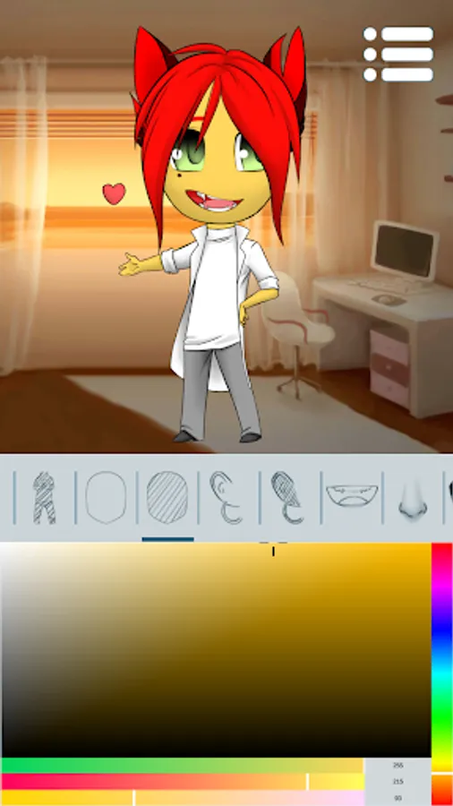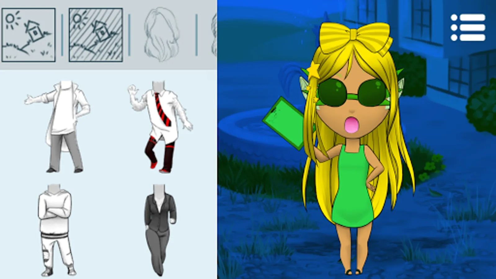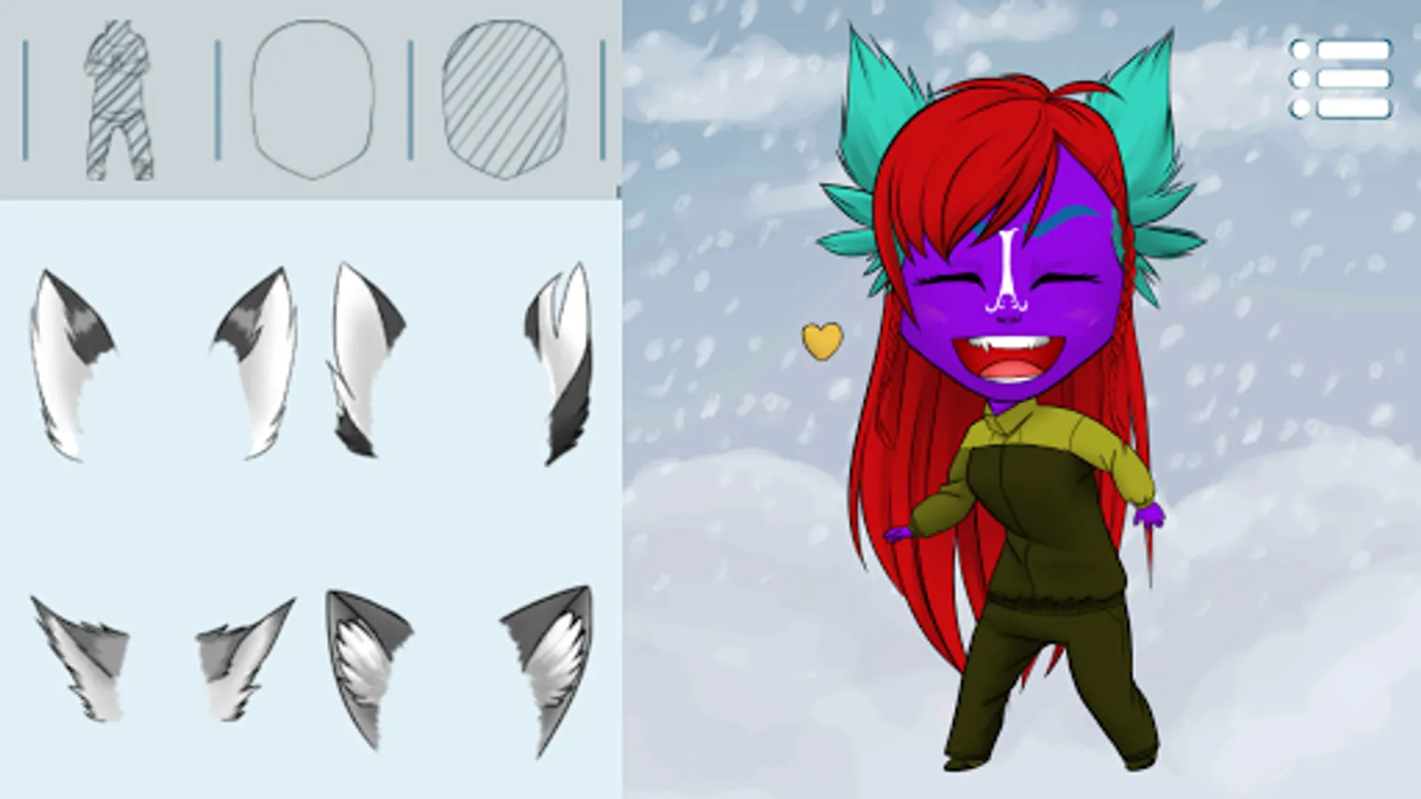 With this app, it only takes a few minutes to create a one-of-a-kind chibi character. Set your character’s gender, profession, and appearance. Add awesome accessories, name your anime character, and you're done! Save it to a gallery and share it with your social network friends or set it as your avatar. If you think our editor doesn’t have enough options, email your character to yourself and keep editing it on your computer.