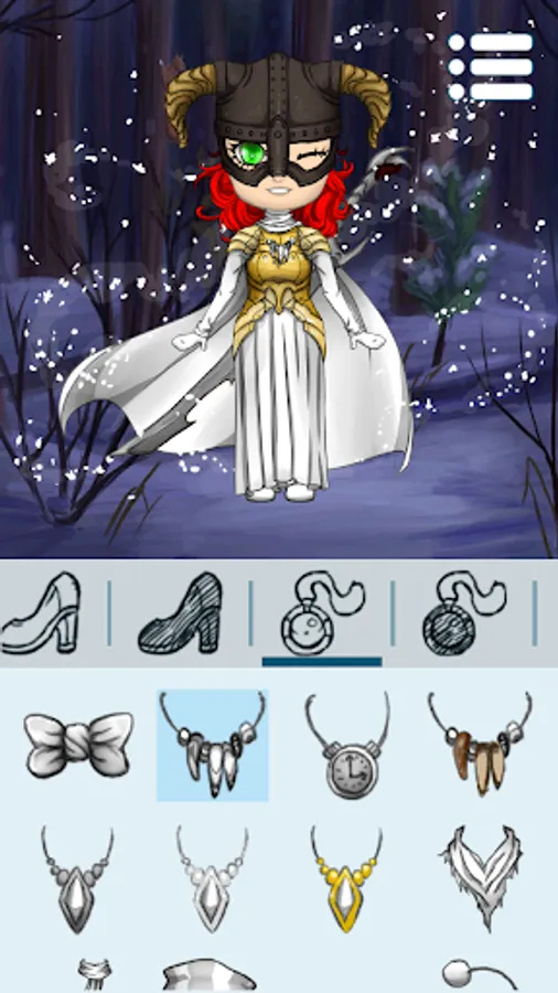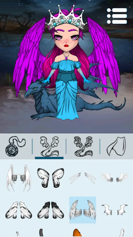 You get a massive range of clothes, accessories, costumes, hair, eyes, wings... You can literally change anything you like—hair color, emotions, or magic powers.