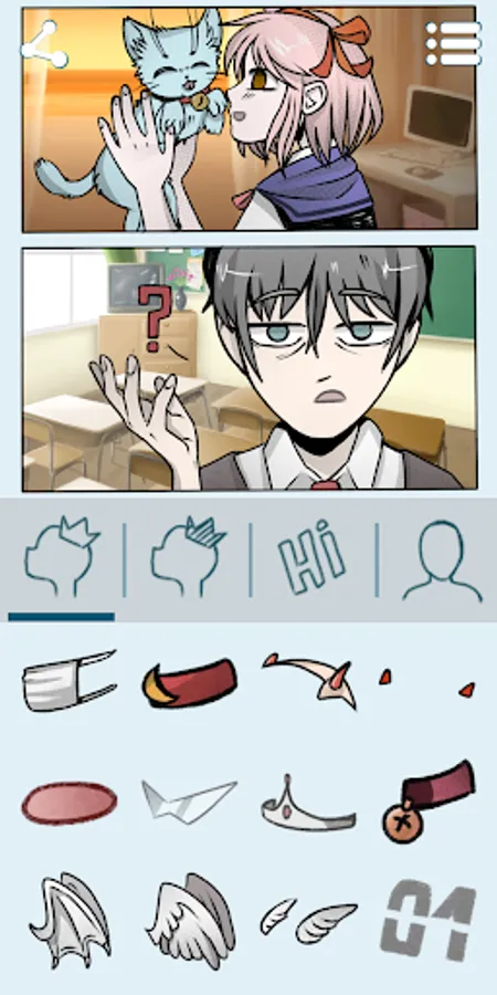 A couple of frames is enough to make you smile! 😂 Decide your characters' appearance, pick clothes for them (like in a dressing-up game), choose their reactions and what they're reacting to...