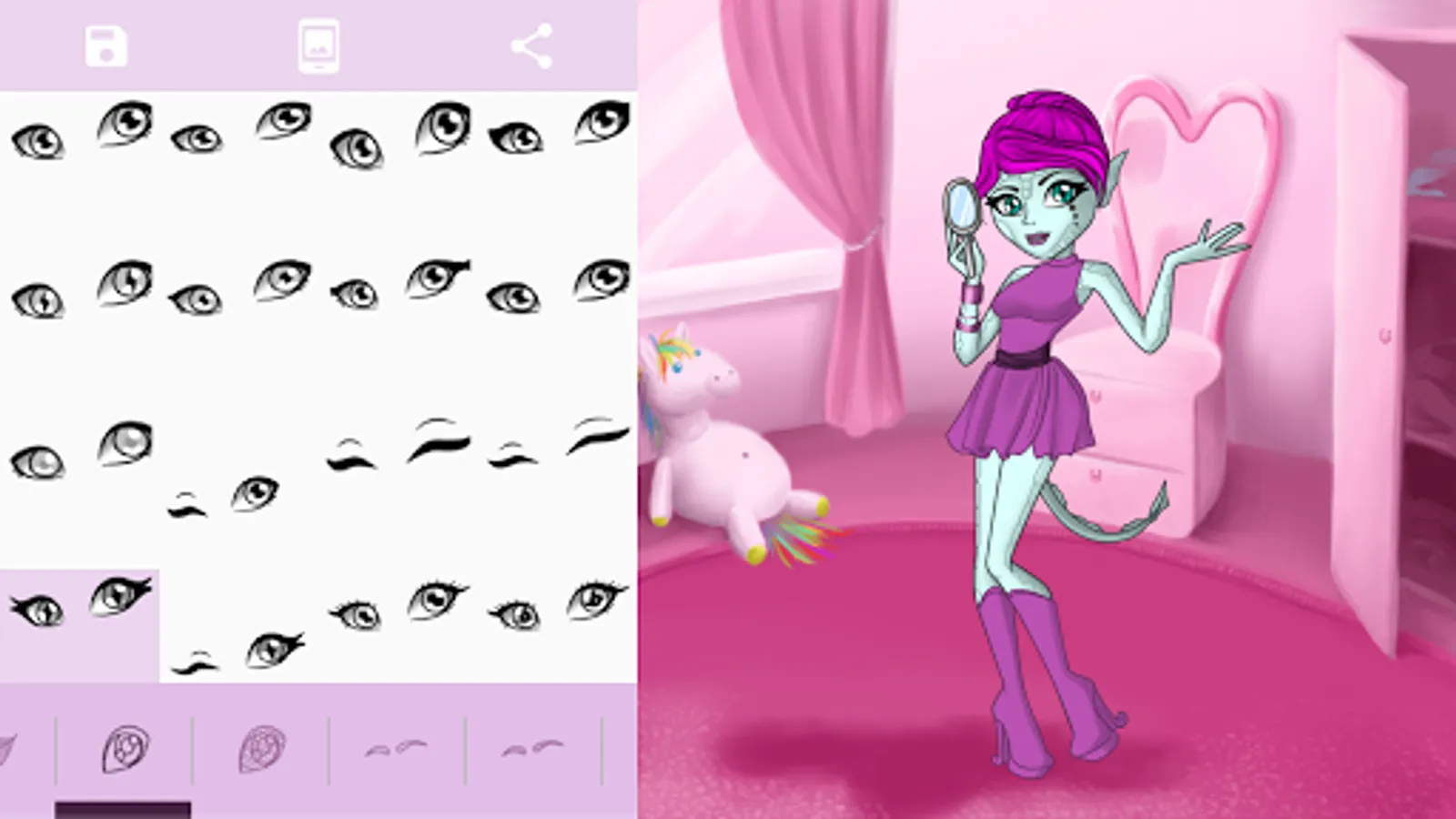 Create an awesome teenager monster in our app. Make it your avatar or add your characters to comics, to make up your own club for monster girls! 0:-)