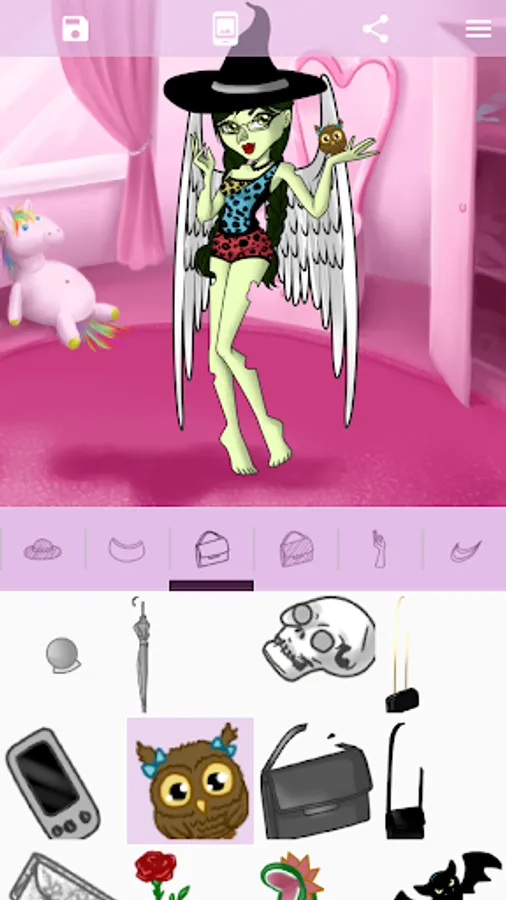 Want to create an avatar of a new cartoonish monster student? Or maybe you dream of a picture of your favorite character but are not good at design? Our game is what you need! The app offers a large variety of fragments for you to mix and match and make up your original monster character: angel, demon, wyvern, werewolf, vampire or anything you can think of. Customize your character’s eyes, lips, hair, clothes, wings, horns and other attributes. Share your pic or set it as wallpaper.