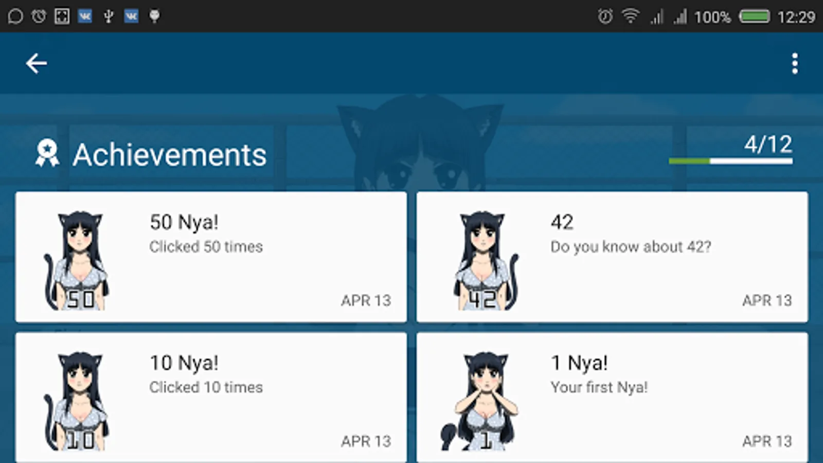 Want to test your patience and kill time in the company kawaii girl? Our anime clicker booster can help with this. Well, you get more exp points and achievements for ordinary clicks. What could be simpler and more fun?