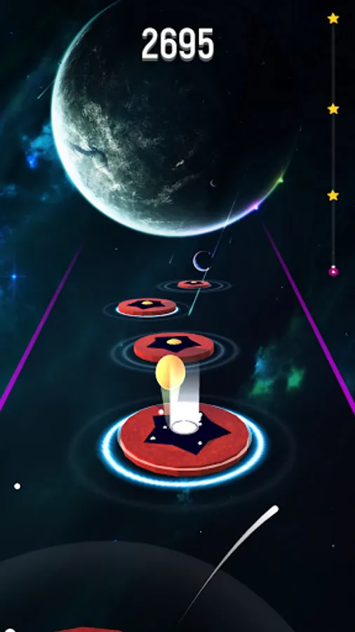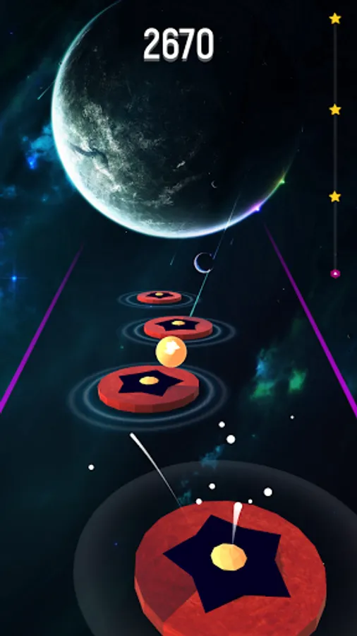 1. Touch, hold and drag to 2 sides to control the ball to jump over the tiles.