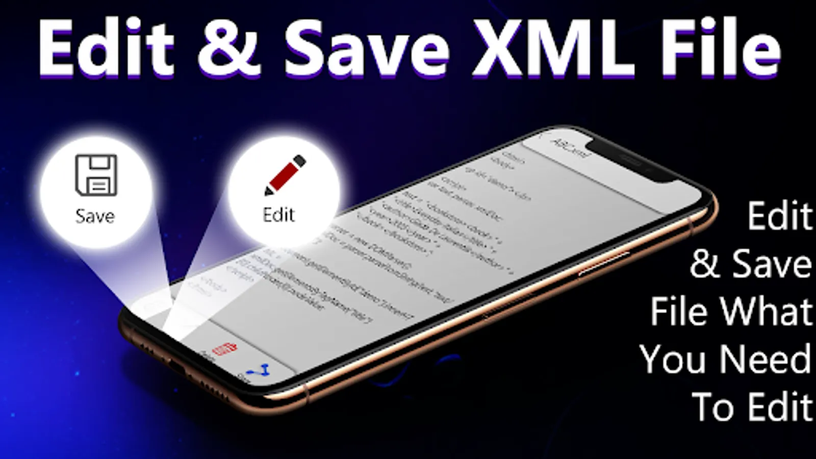 XML Editor: xml Viewer and XML Reader is best android tool and when you open the file with .xml extension mean xml and html file you can edit your code and can change the code of xml move the lines of code according to your need and add more code or remove some lines of xml code which is not necessary for your desired use. Xml editor for android is a very power tool to simply edit and view for android as a xml viewing for android to handle the xml files.