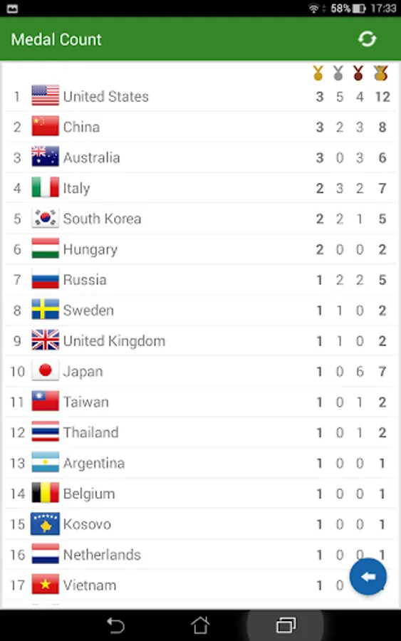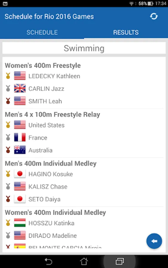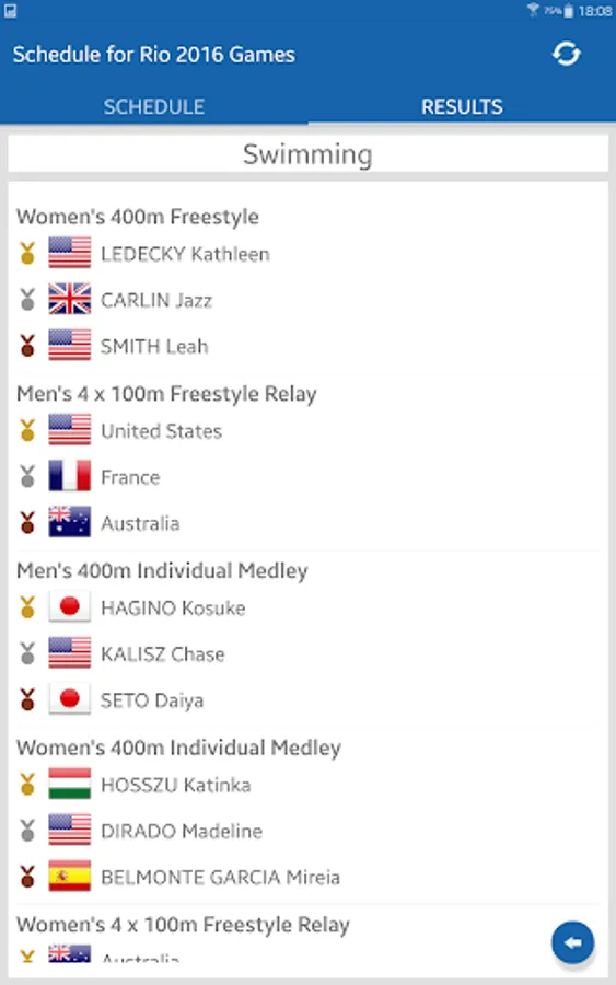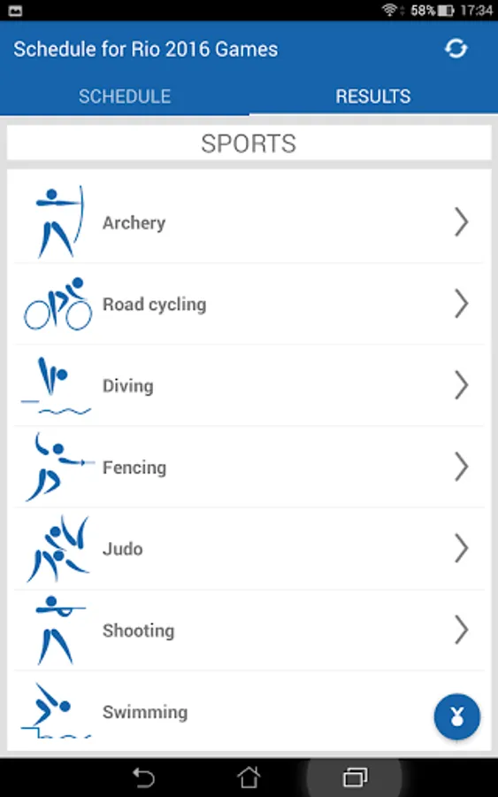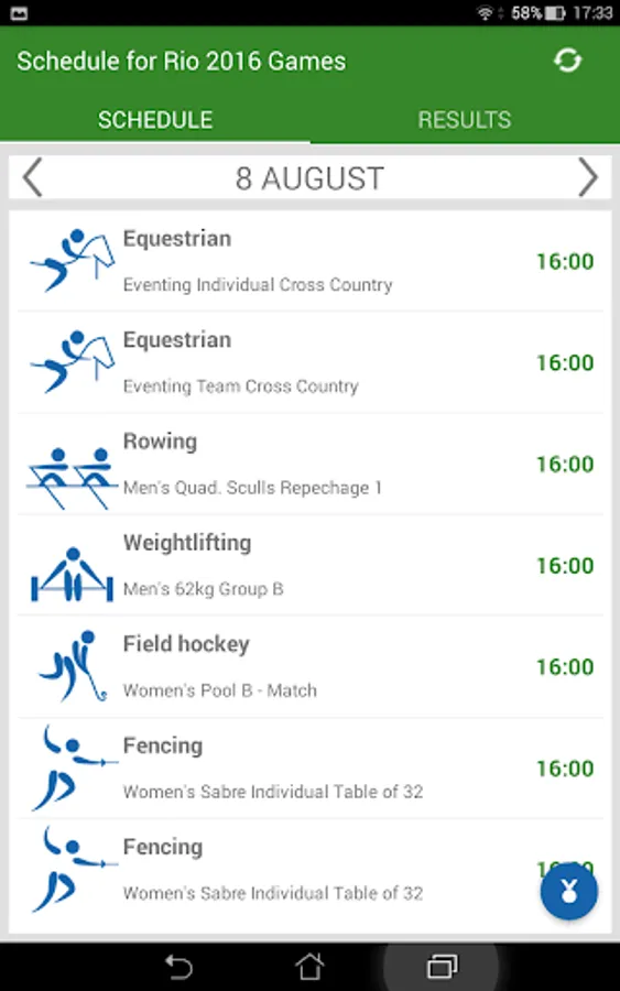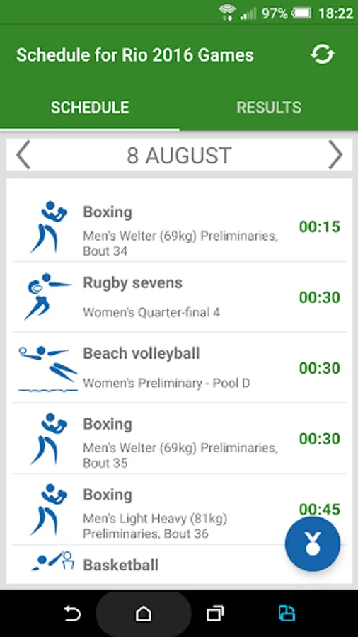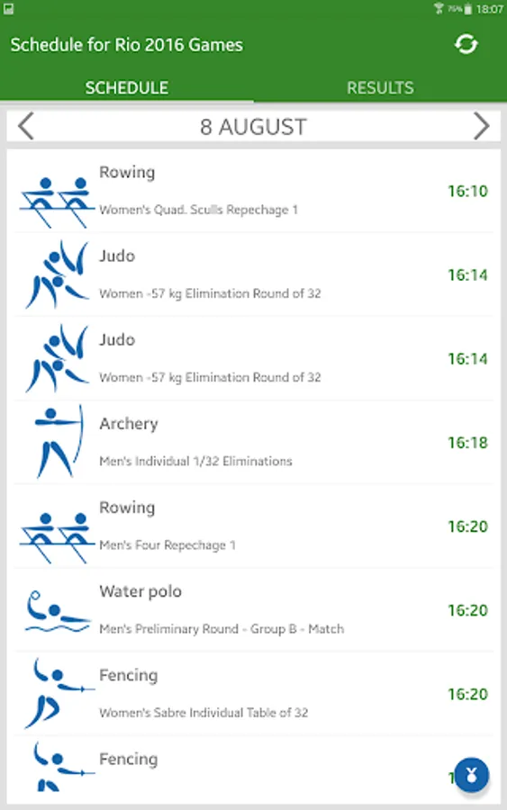 Calendar and schedule for Rio 2016 Brazil for those who are interested of sports and likes to watch the Summer Olympic games. The application will help you to know the time of the competition of the favorite sports. Also there is a table of medals, which is constantly updated and final results of the competition in all sports disciplines.