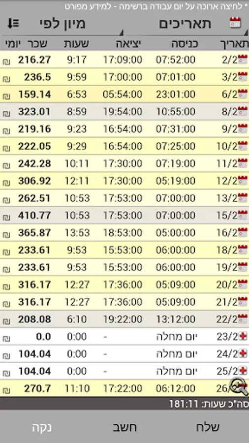 Haflitzih most updated and most accurate calculations of wages and hours of work!