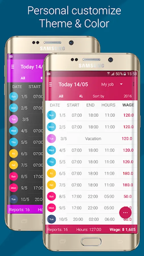 ★ New interface which allows for various color selections and color themes to correlate with different shifts