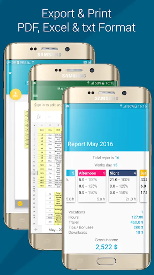 ★ Automatically adjusts for shift differentials and displays them in custom colors assigned by user
