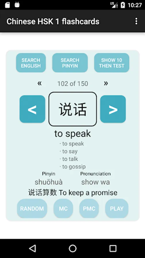 • Flash card style interface