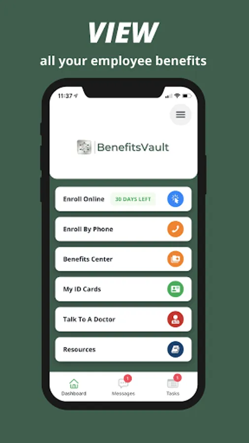With BenefitsVault, all of your employee benefits information is stored securely in one place. You can enroll, view your benefits, access ID cards, and find helpful resources for medical providers and prescription discounts. Stay informed by viewing assigned tasks and messages from your company and much more!