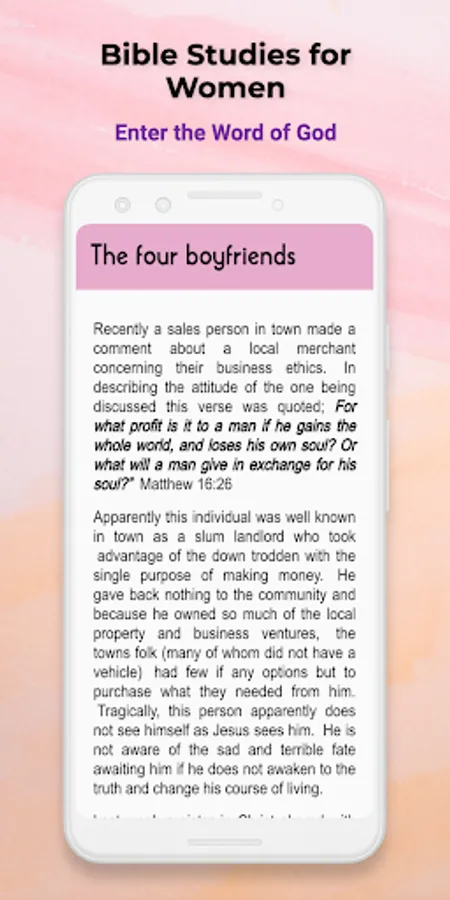 This app is designed to inspire and motivate women to deepen their knowledge of the Bible and take their Bible study to the next level. It offers resources and tools to help women read and better understand God's Word, as well as apply it to their daily lives."