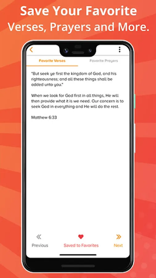 • Save your favorite Bible quotes, Bible devotionals, and Bible prayers. Never go without God again!
