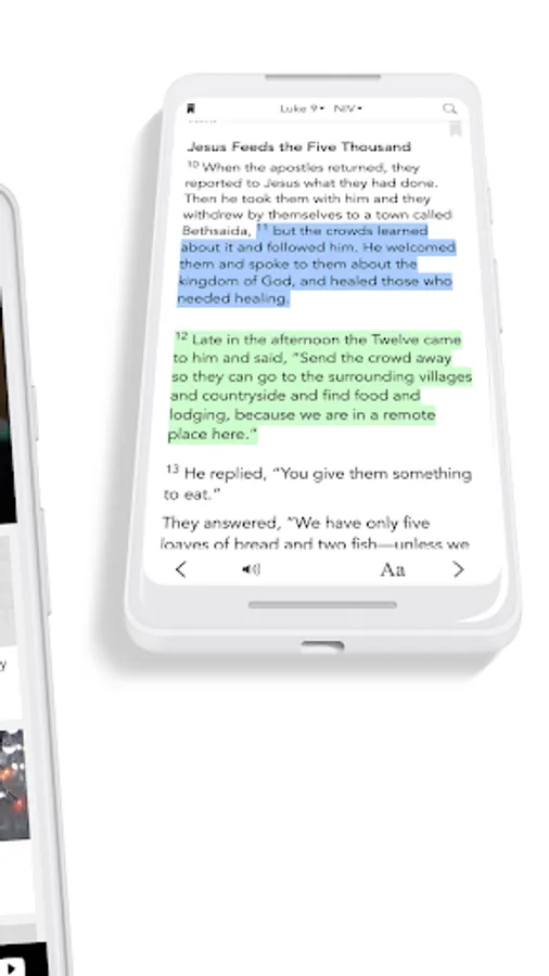 * Free Audio Bible: Click listen and you are instantly listening to the daily devotional plan. You can also look up any passage you want, the listen tab is in the bottom right hand corner at all times.