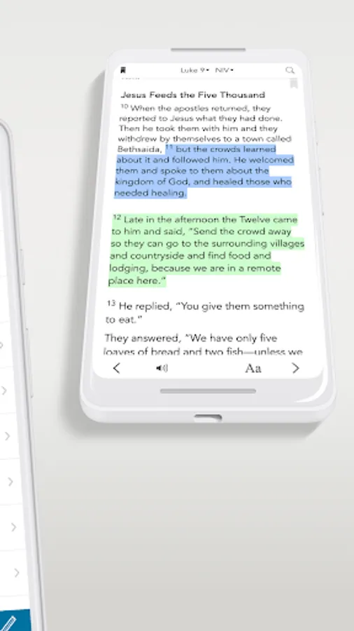 * Free Audio Bible: Click listen and you are instantly listening to the daily devotional plan. You can also look up any passage you want, the listen tab is in the bottom right hand corner at all times.