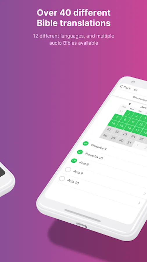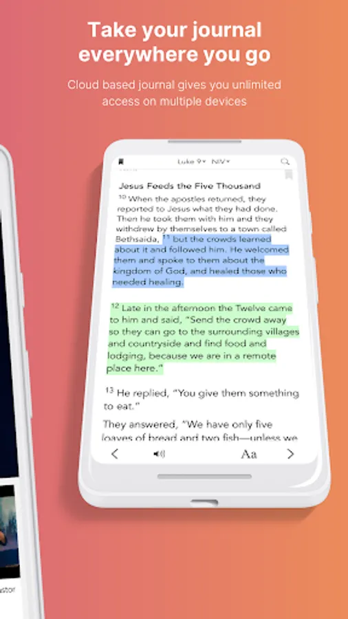 * Free Audio Bible: Click listen and you are instantly listening to the daily devotional plan. You can also look up any passage you want, the listen tab is in the bottom right hand corner at all times.