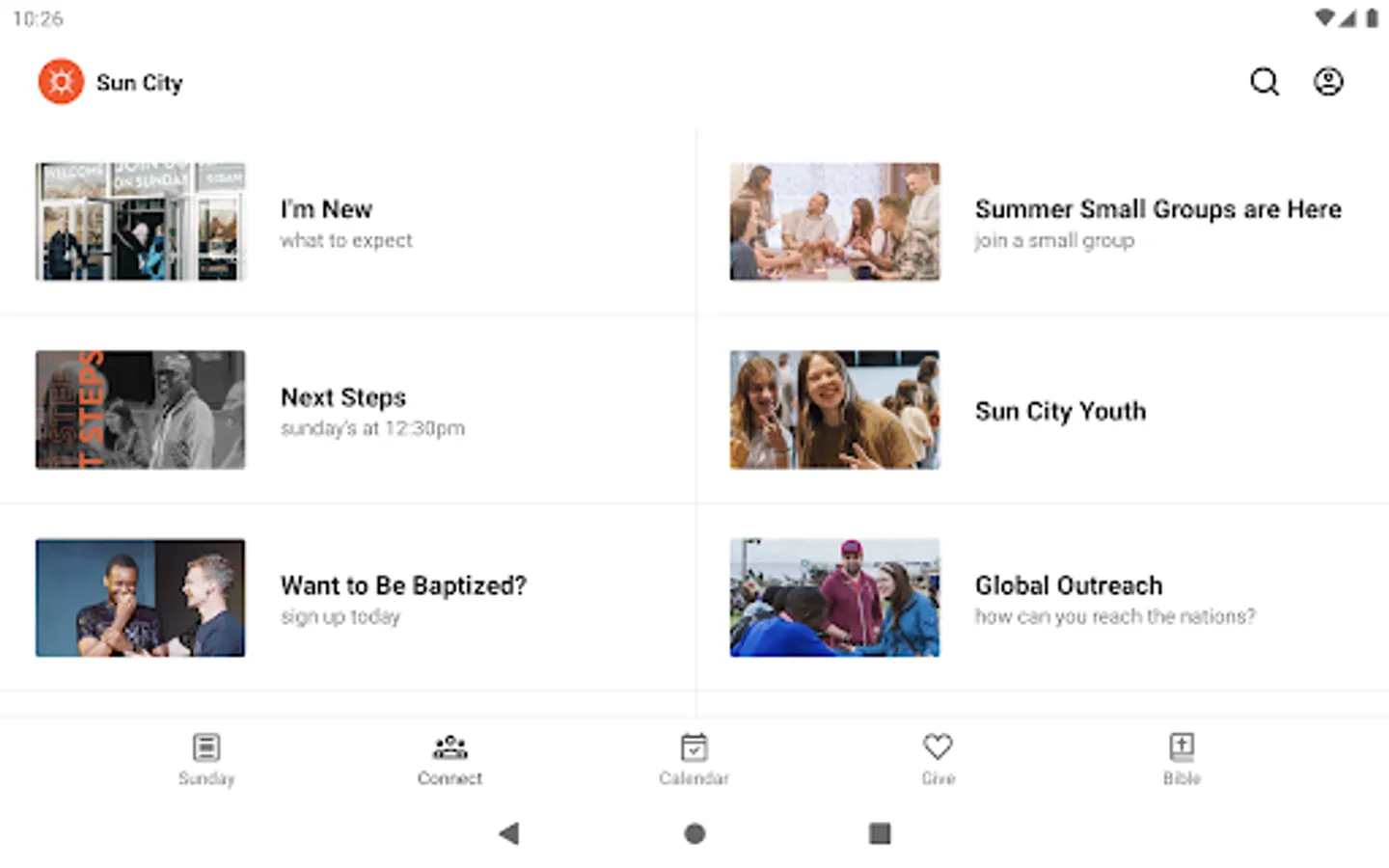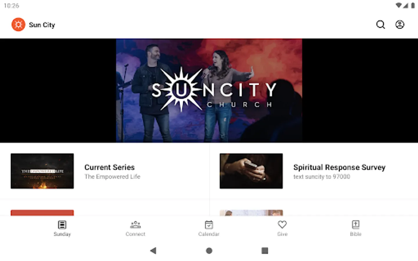Sun City Church serves the community of Spokane, Washington. We exist so people far from God can know and become like Him. The Sun City Church app is the easiest way to connect with our church on your mobile device. Podcasting, mobile giving, journaling, reading and listening to the bible, social media and our most recent news are all found here.