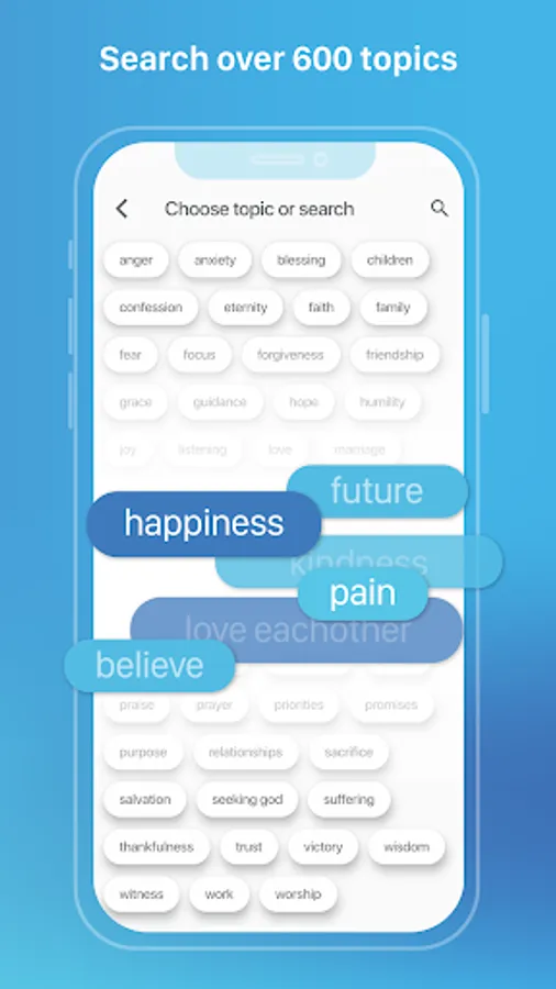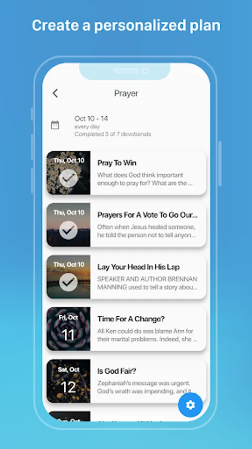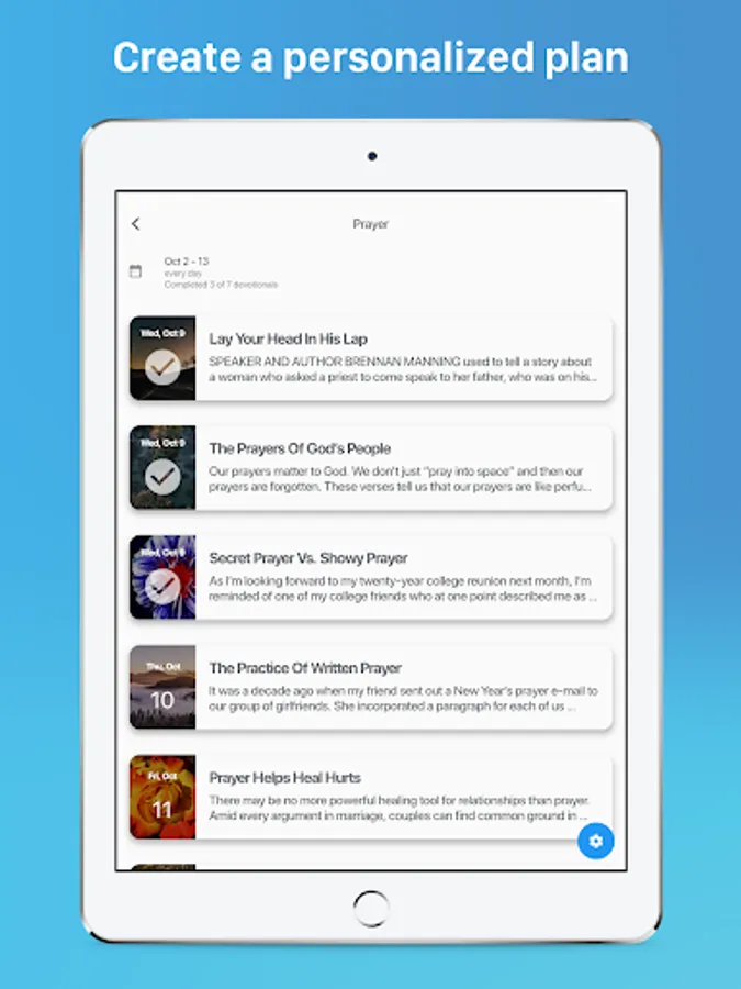 • Customize your devotions based on your needs for a day, a week or longer, or pick a topic and the app will create a plan for you