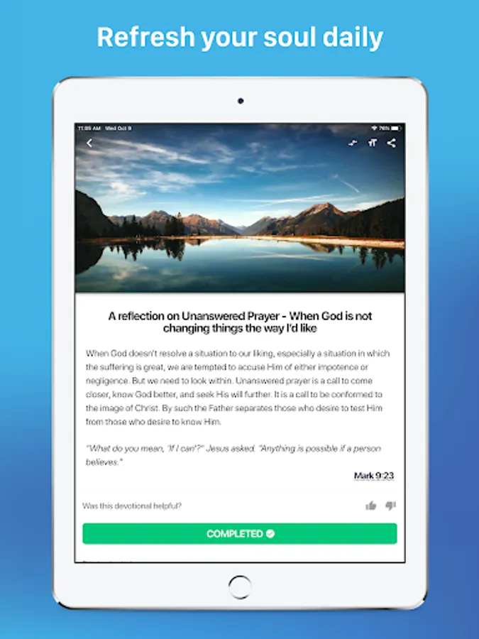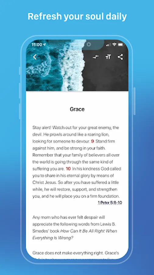 • Get a reminder every day of when to read so you never miss out on a devotion