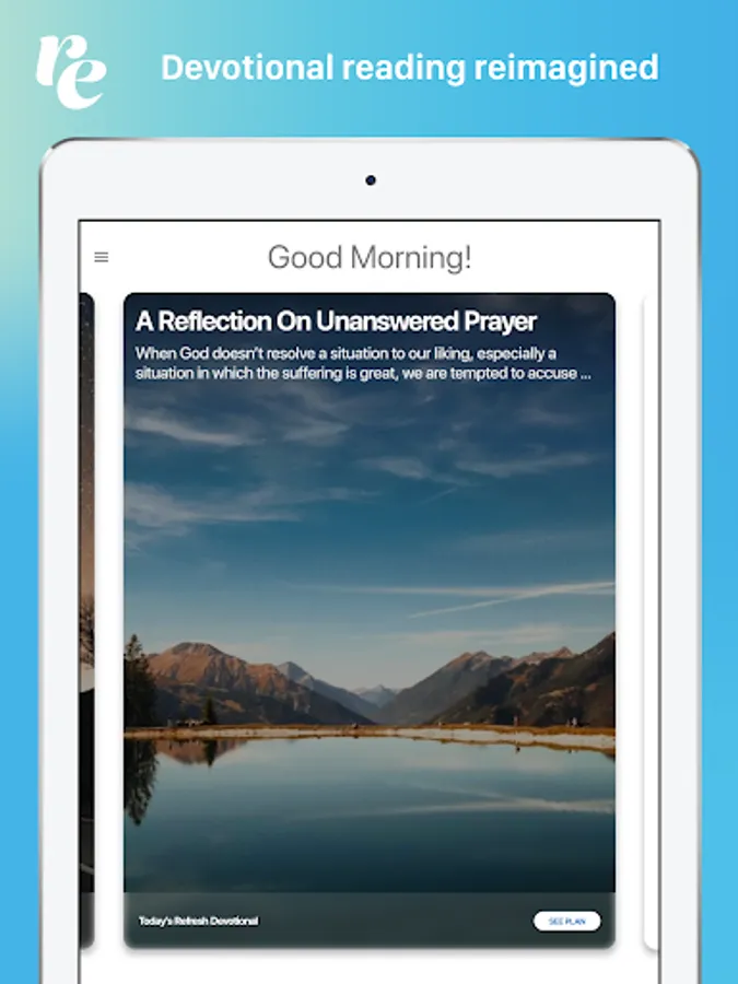 Get a fresh start every day with Refresh, the new, easy-to-use daily Bible devotional app from a Tecarta / Tyndale partnership.