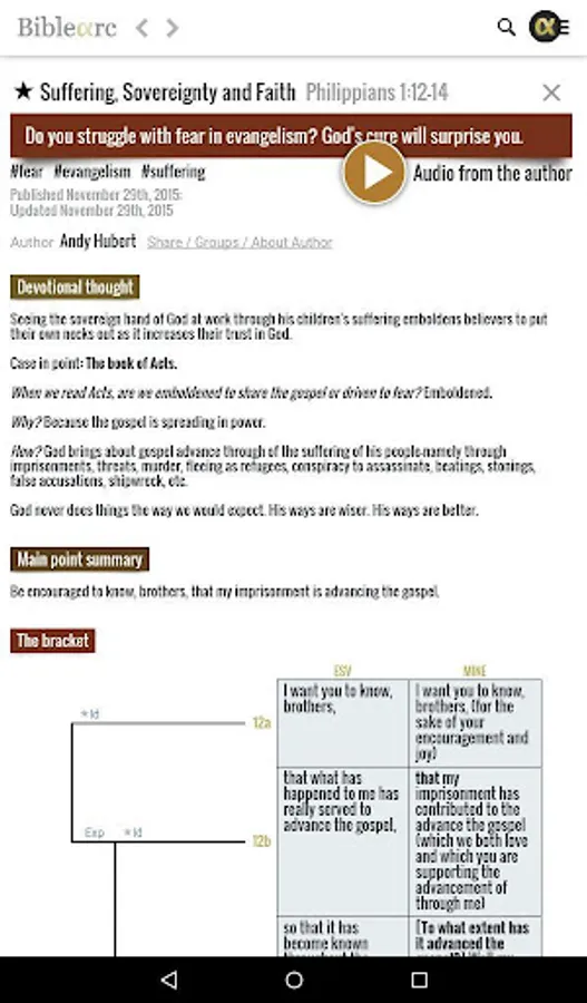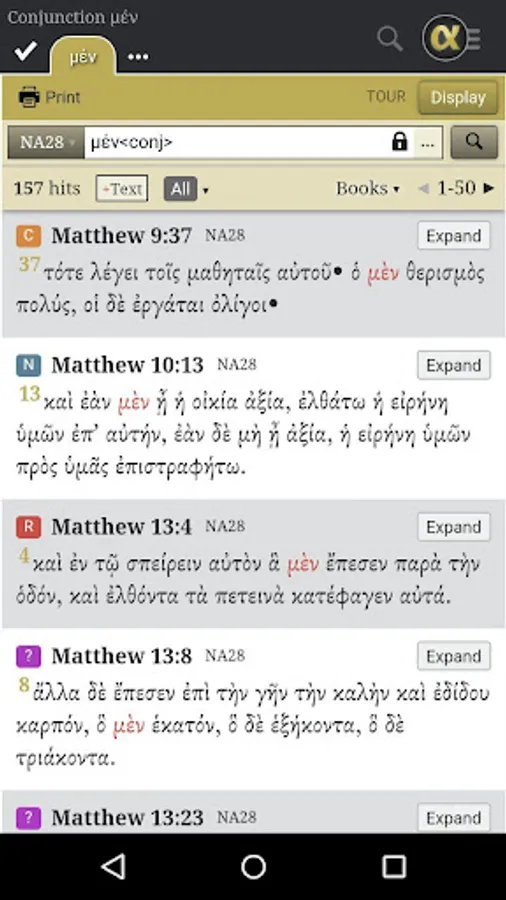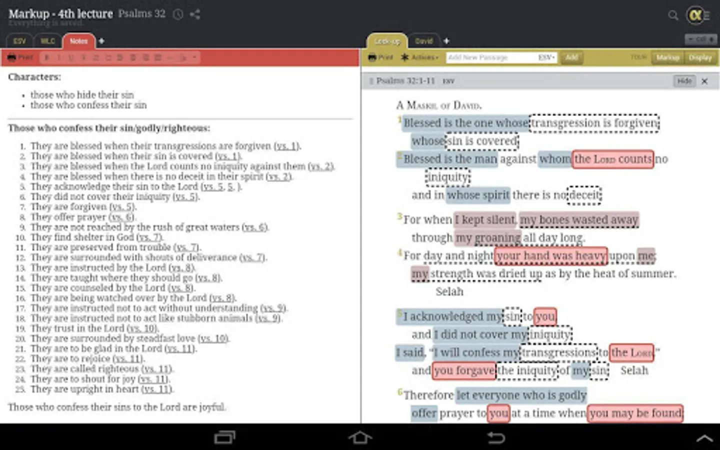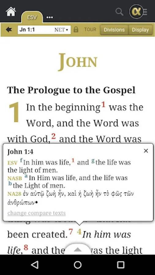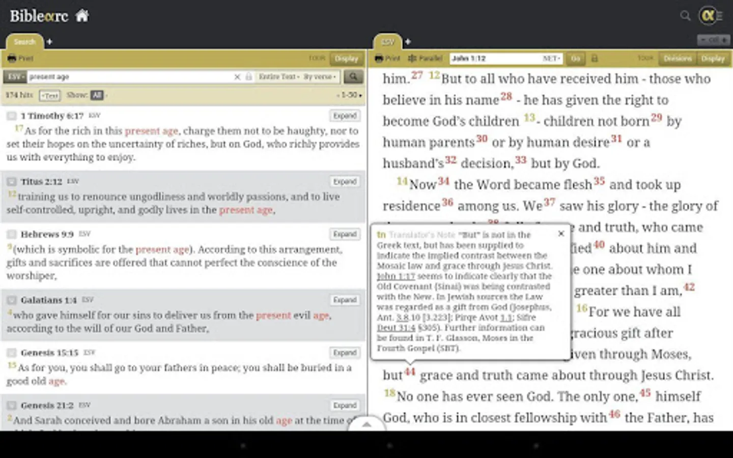 ✓ Search: type and easily search any word or phrase in Scripture. Want to search in the original languages? Search the Hebrew and Greek lexicon with our Scholar search, which rivals equivalent search engines in Logos and Accordance.