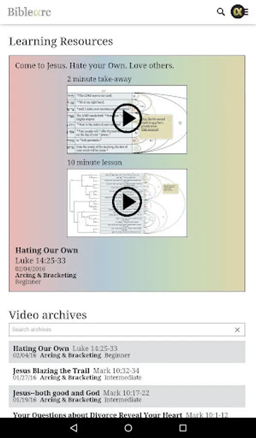✓ Courses: take an online course and learn how to dig deeper into Scripture using one of Biblearc's graphical methods. Classes for beginners through advanced, with options for personal feedback and help from the instructor, and group discussions with other students.