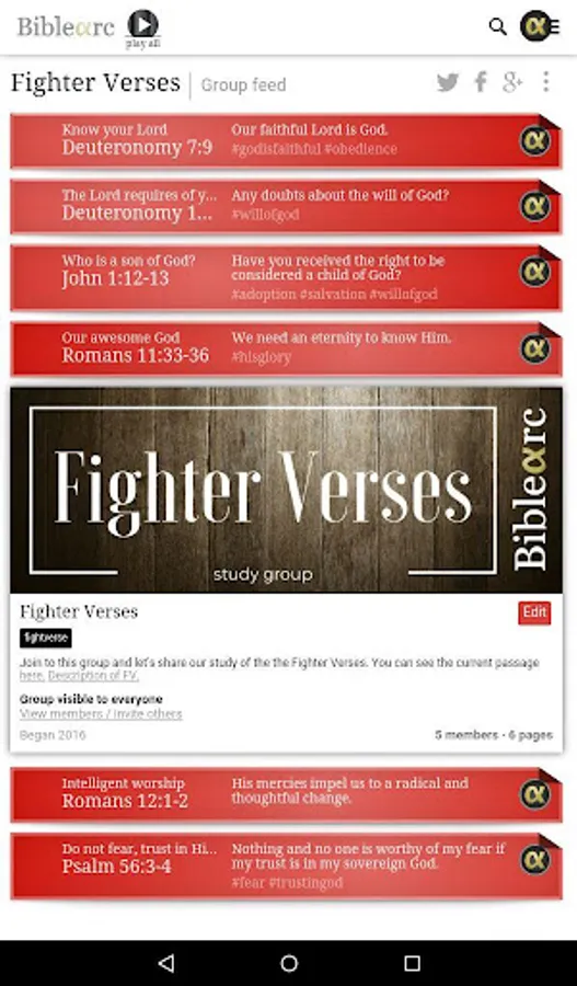✓ Groups: share and discuss with others around the world on specific topics or passages.