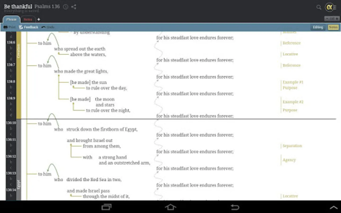 ✓ Phrasing: determine a biblical author's main point and how he supports it via indents and arrows.