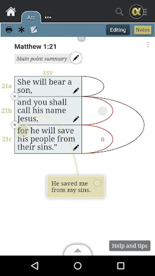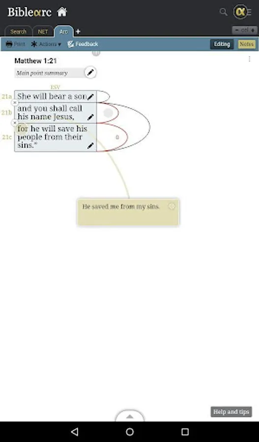 Biblearc is a cloud-based application for deep study of the scriptures. In our Bible study toolbox you will find an approachable and powerful integration of cross-references, study notes and the most advanced original language search available online. Biblearc’s speciality is graphical Bible study methods, giving you the world’s smoothest experience for Arcing, Bracketing, Phrasing and Sentence Diagramming. Access your work from anywhere, as it is saved in the cloud. We offer online courses for all levels, from the beginner who has never heard of these methods and simply wants to learn to study the Word deeper, to the professor and pastor already using them.