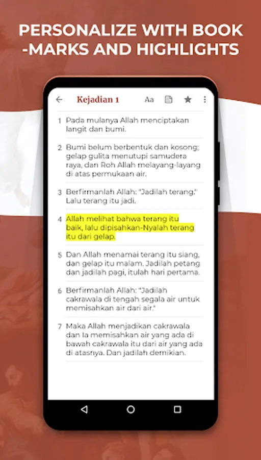 Free Alkitab Bahasa Indonesia( Alkitab yuku ) is created with Alkitab Indonesia standard, with a legitimate reading. Alkitab Bible app UI is designed for easy navigation capabilities. Bible Alkitab Bahasa Melayu provides daily bible reading notification and tracks all the read chapters. We welcome any suggestions to improve ourself about Alkitab bahasa jawa free app. Start your day with Alkitab indonesia inggris. Alkitab offline Bible is for kids, Alkitab bible Indonesia - holy bible ( Alkitab) for couples and Bible for all Christians across the globe, Indonesian people, including Catholics, also for the people who use Bali Bible - balinese bible. So this daily Alkitab Bible study devotion app will be the best for Alkitab bible study in Android mobile phones. ark the Inspiring Alkitab Bible verses daily ( Alkitab quote ) . Alkitab untuk android or android Alkitab app, always tracks the unread chapter for daily bible reading. Spread the jesus words using Alkitab versi the message with Alkitab offline