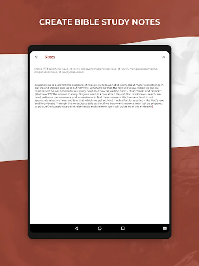 - Create Bible Study notes, print/export Tagalog Bible notes to PDF, & Back-up