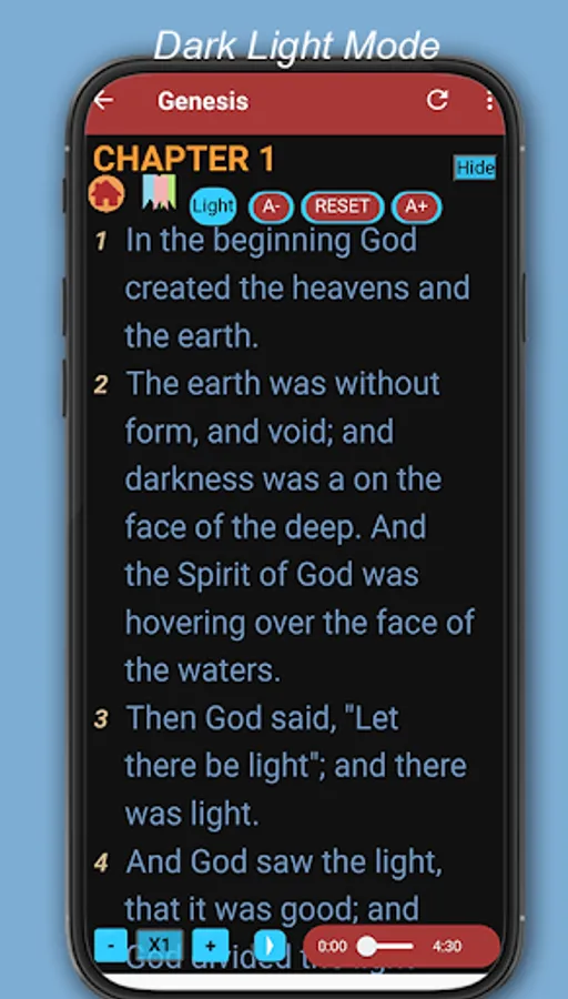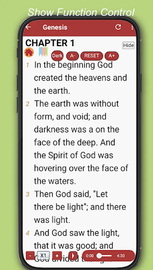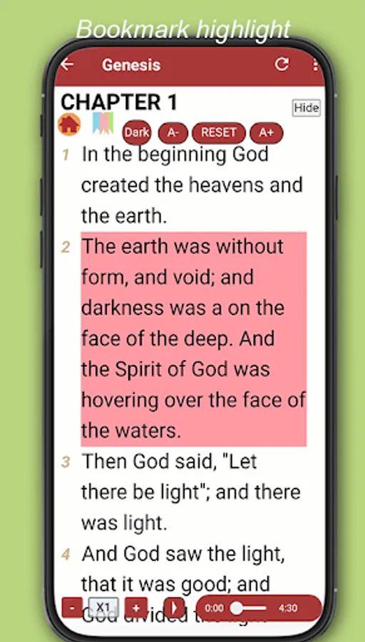 Bible nkjv book : Free bible is bible apps standard popular most Christians. feel easier for read bible offline No wifi. Can set font size, dark night mode, bookmarks highlight on verse charpter.If you want to clear for read can set Hide control fucntion. It's nice.