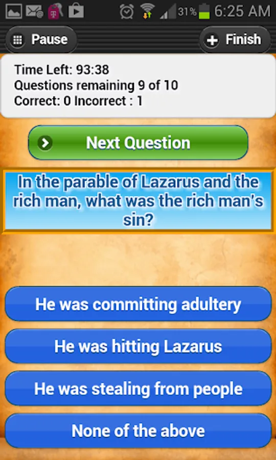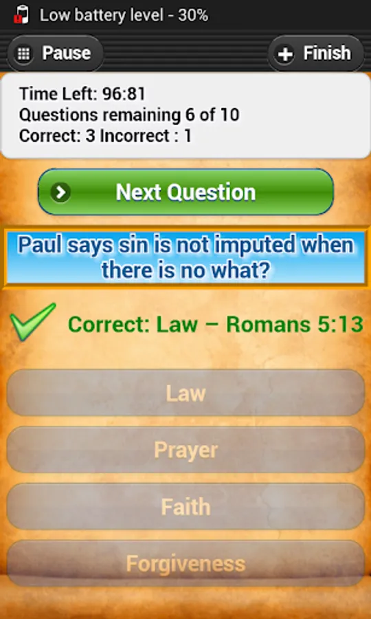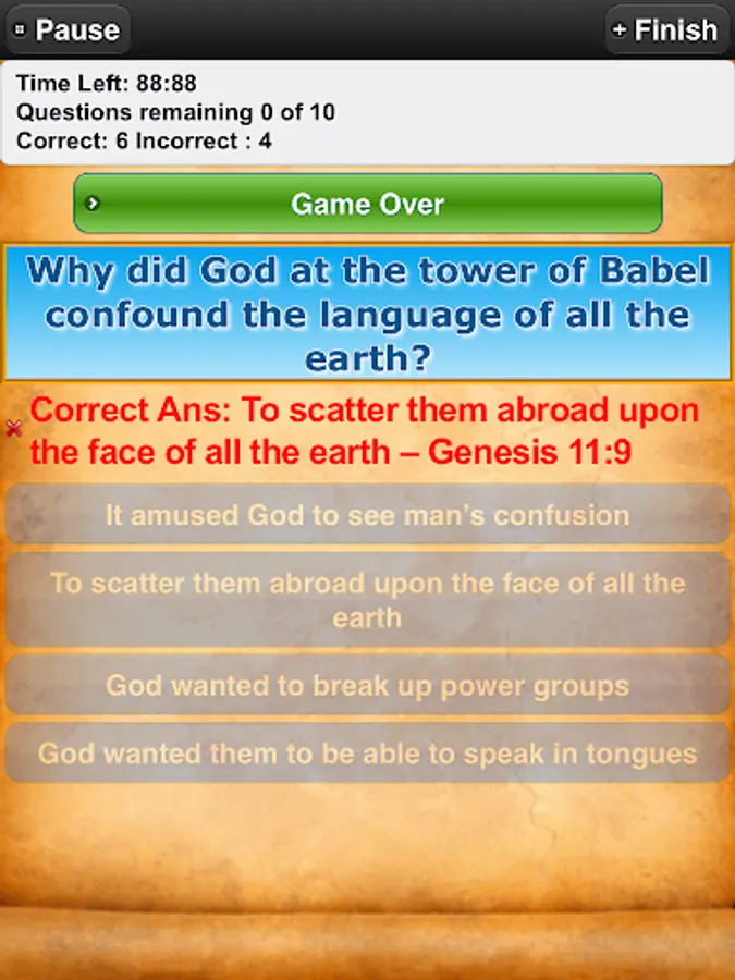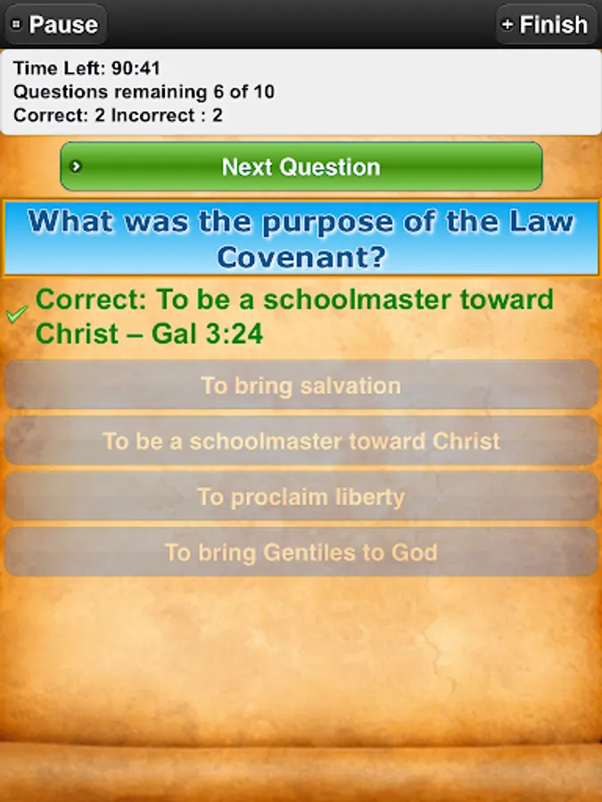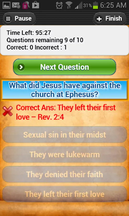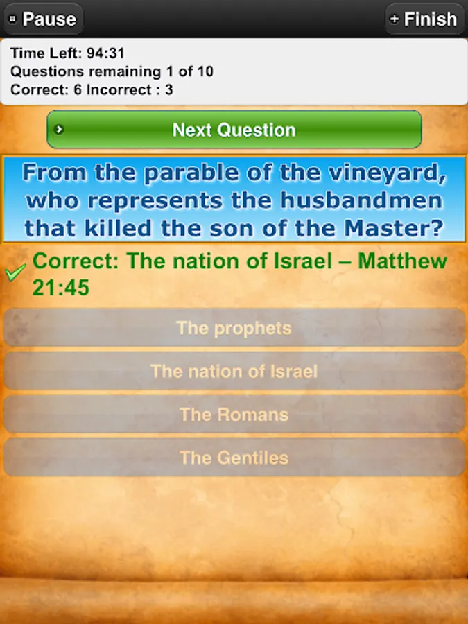 - After you answer the question, it will show you if it is correct or not and show the scripture reference.