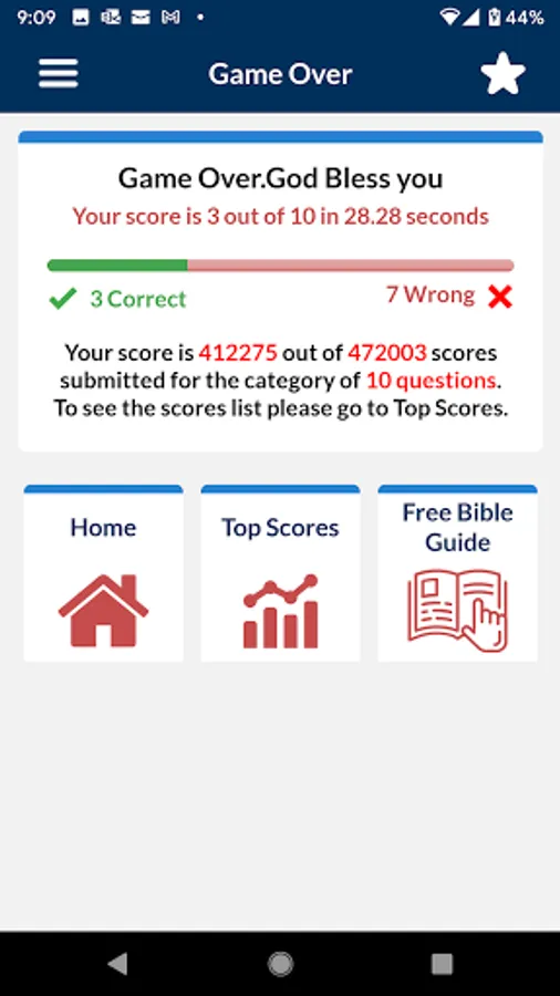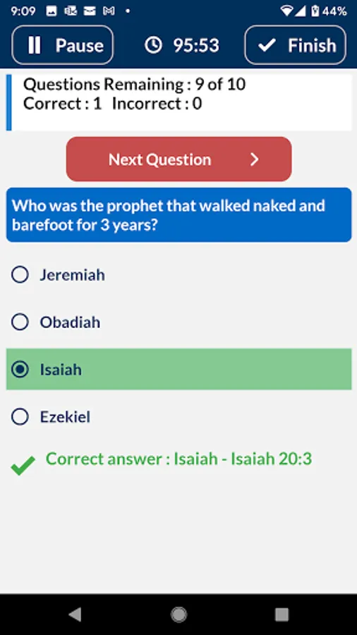 - After you answer the question, it will show you if it is correct or not and show the scripture reference.