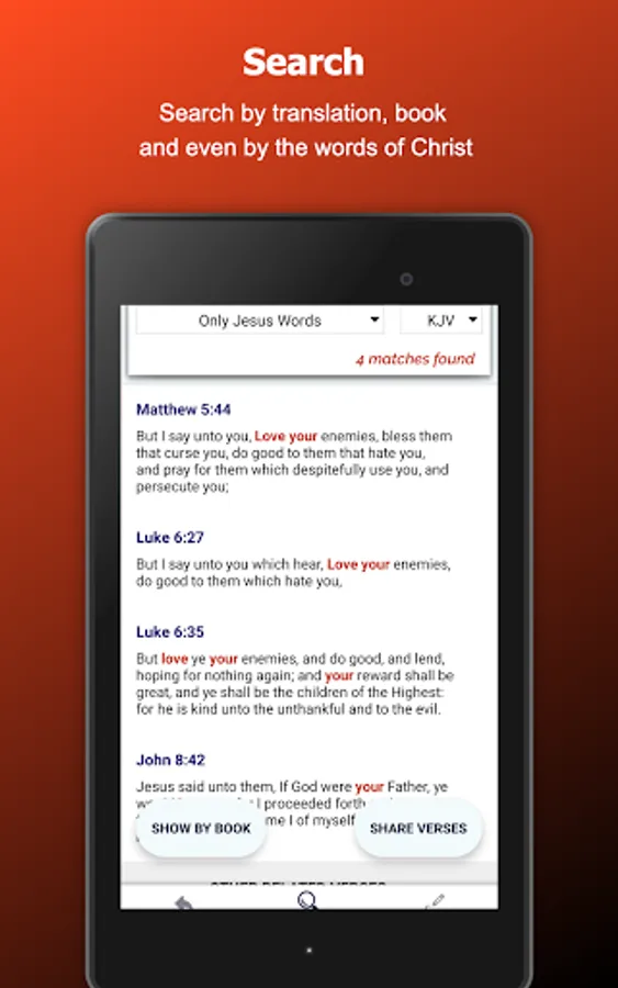 - Perform a bible verse search lightning-fast. books and translations (bible search offline included)
