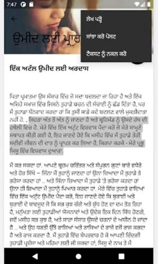 Punjabi bible verse with prayers - you can copy text and share any social networks everyday with new.