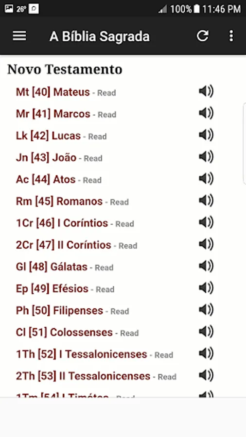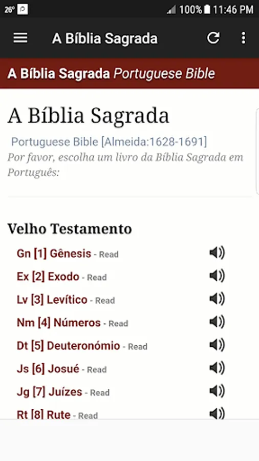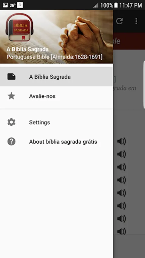 Bíblia Sagrada Grátis [The Portuguese Bible – JFA] - Bible translations into Portuguese. João Ferreira de Almeida version for your android devices. It comes complete with text and audio Bible in Portuguese, New and Old testaments. You can read the Holy Bible in your language Portuguese. If you have no time to sit and read, just play audio in this app and listen. You can carry your Bible with you wherever you go. Portable and easy to use. Listen to the word of God every day and come closer to God by use the The Portuguese Bible – JFA app. Hope you enjoy the app! Try to install now.