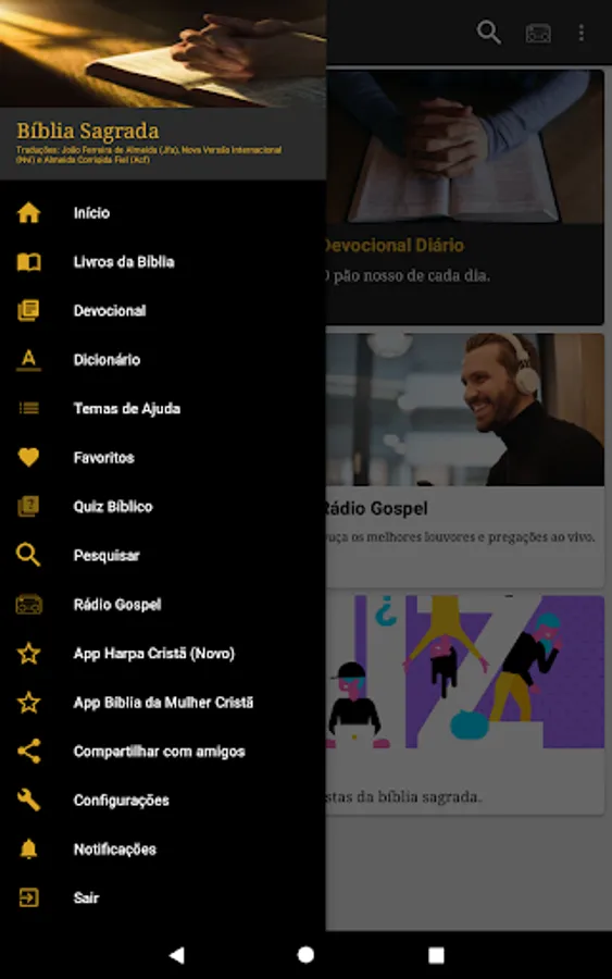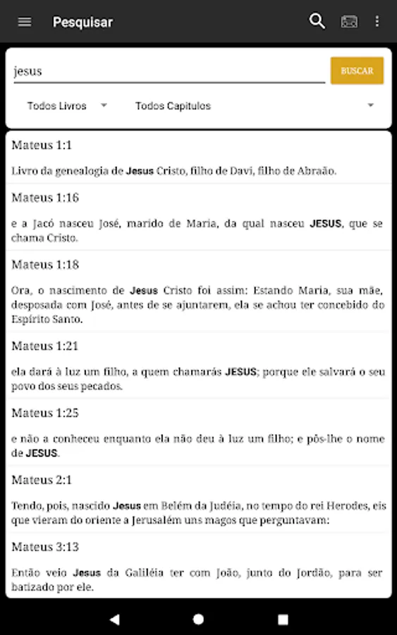 Versions: New international version (NVI), João Ferreira de Almeida(JFA) and Almeida Corrigida e Fiel(ACF).