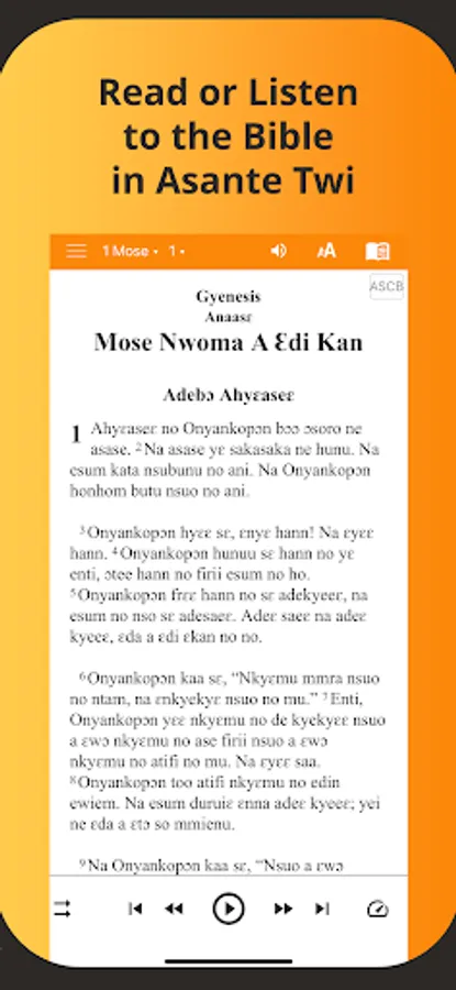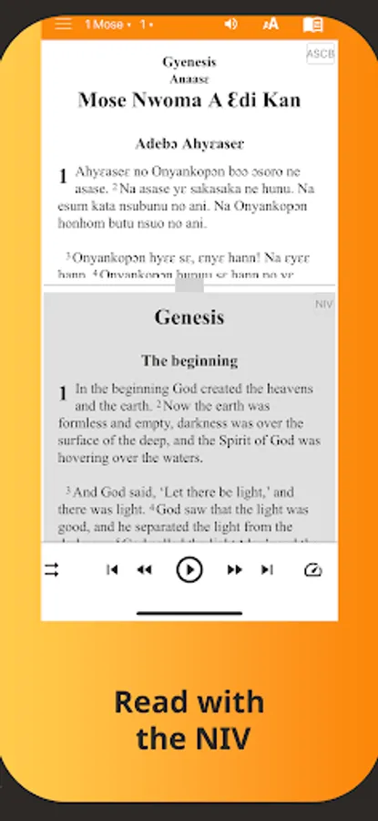Biblica New International Version in English that can be read side-by-side or verse-by-verse with the Asante Twi Translation.