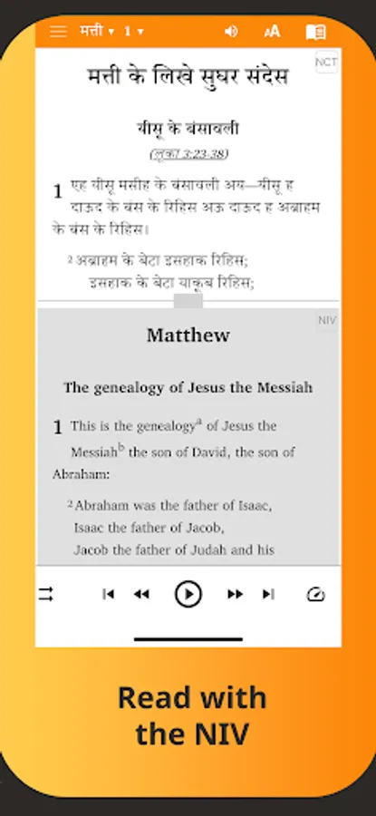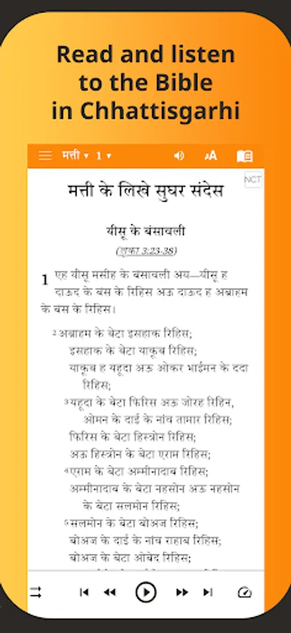 Biblica New International Version in English that can be read side-by-side or verse-by-verse with the Chhattisgarhi Translation.