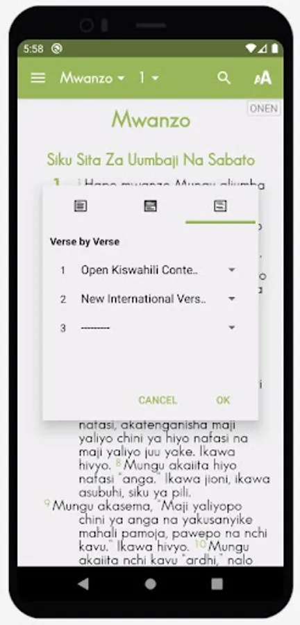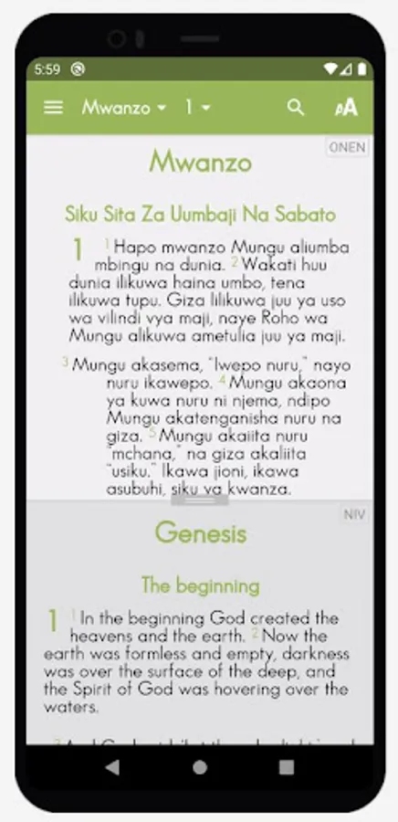 The English version of Biblica New International Version and can be read side by side or verse by verse.