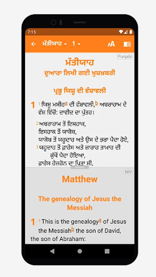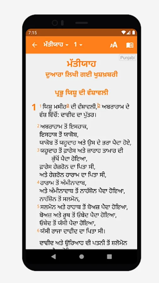 ਵਿਵਸਥਿਤ ਕੀਤੇ ਜਾਣ ਯੋਗ ਟੈਕਸਟ ਆਕਾਰ ਨਾਲ ਆਸਾਨ ਬਾਈਬਲ ਨੇਵੀਗੇਸ਼ਨ।