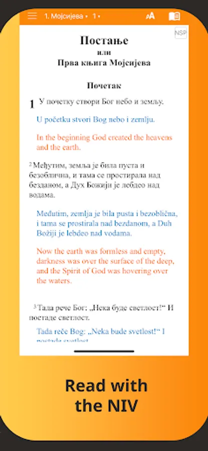 Biblica New International Version in English that can be read side-by-side or verse-by-verse with the Serbian Translations.