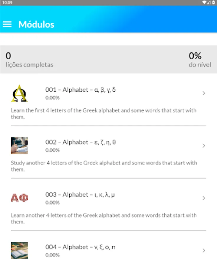 Biblical Greek activities were developed by experts in the English language in partnership with experts in the field of theology. Therefore, the Biblical Greek user studies the English language in a contextualized way, seeing and reviewing words, phrases and passages from the Old and New Testaments that are important to all Christians.