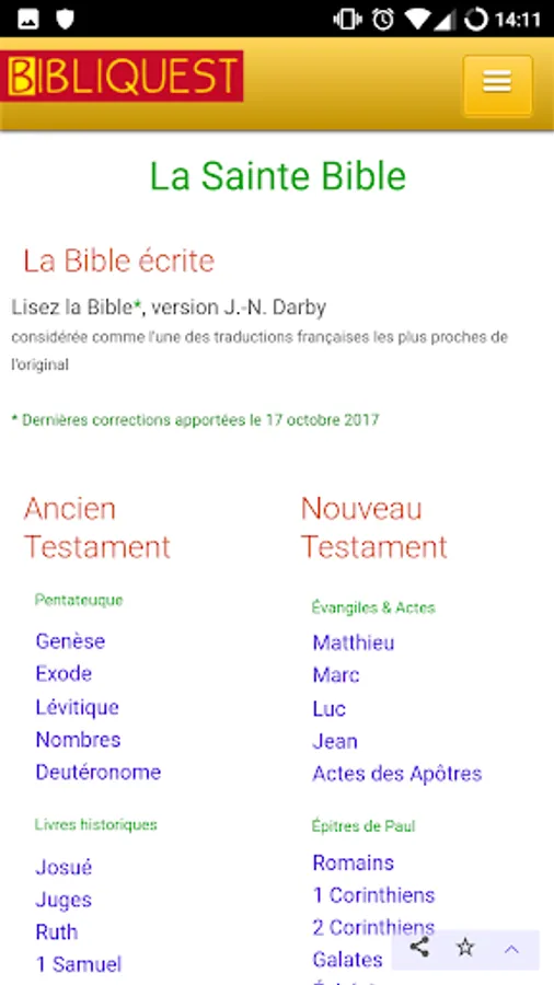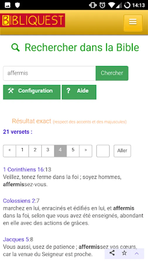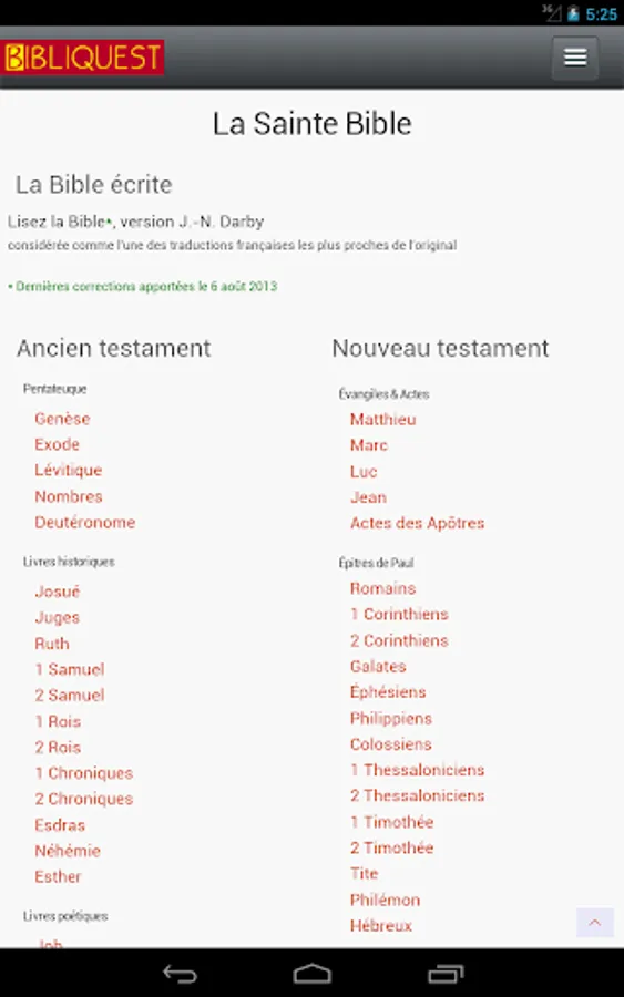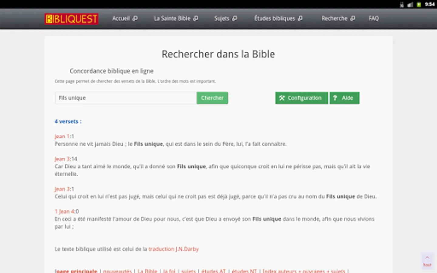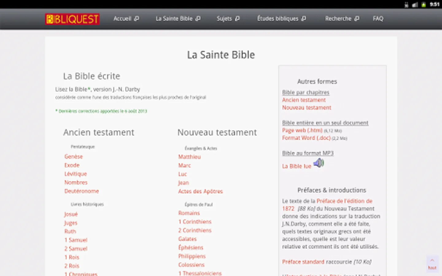 • To operate offline without an internet connection, the data on the bibliquest.net site is installed on the phone's memory (approximately 90 MB)